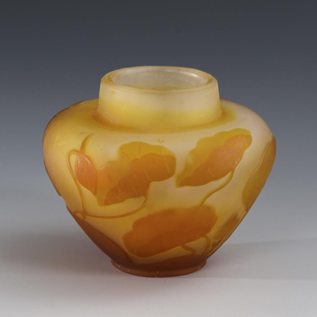 Baluster vase with nasturtium flowers etched around; dislocated demolition.