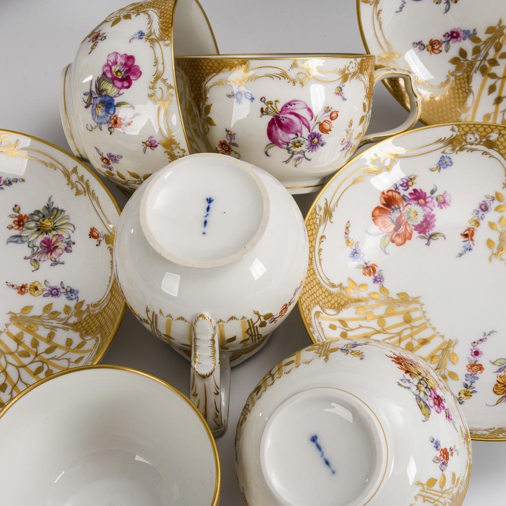 11 pieces of a coffee service with floral painting. KPM Berlin.