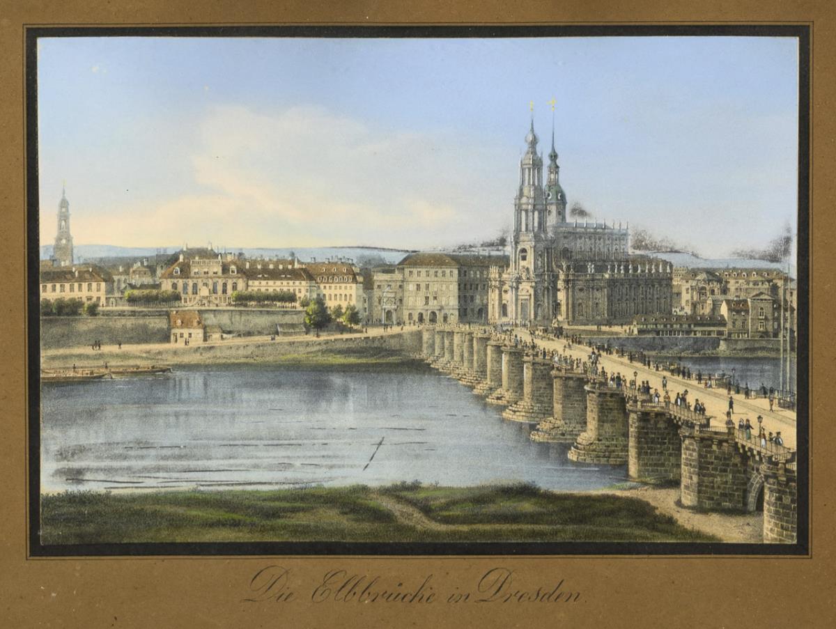 "The Picture Gallery and Frauenkirche in Dresden" | "The Elbe Bridge in Dresden".