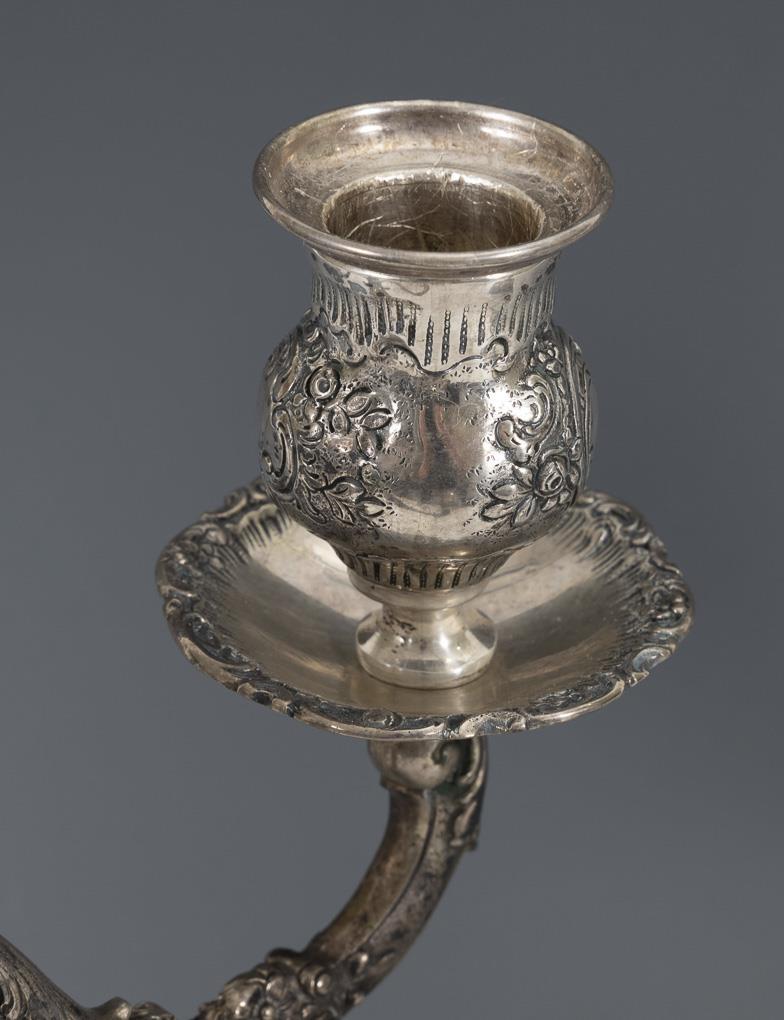 Pair of relief silver candlesticks. Adam Manns & Son, Doernigheim.
