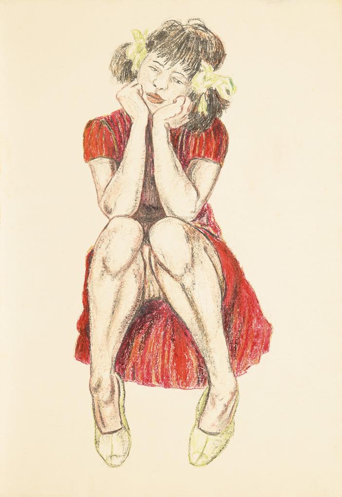 9 chalk drawings with portraits of women in various poses, sheet each: 59 x 42 cm, each with some traces of grip, 19 etchings with various subjects - including animals, portraits, nudes, landscapes, genre scenes, max. 50 x 37.5 cm, plus small exhibition booklet "Art Exhibition Johannes Brauer Kreismuseum Burg Gnandenstein".