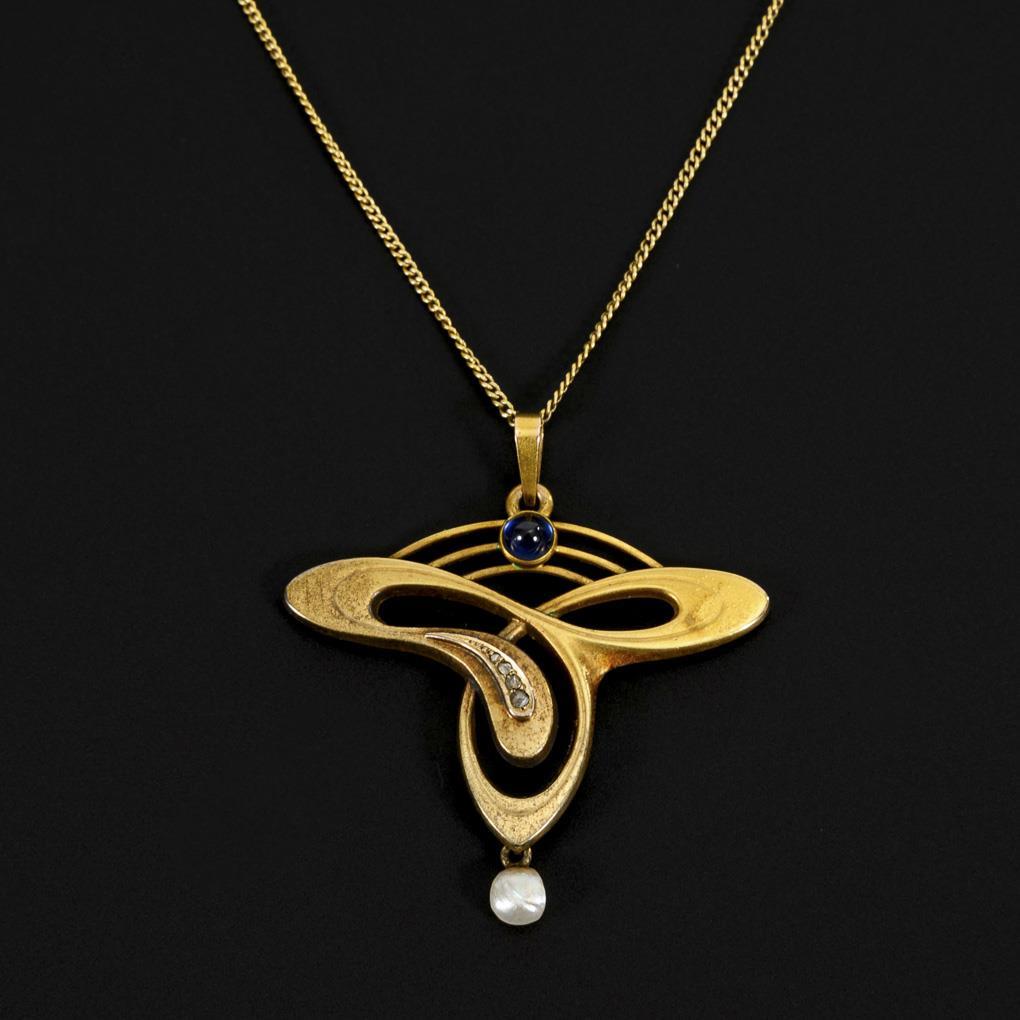Yellow gold 585 stamped. Pendant 3.8 x 3.5 cm. Chain L 44 cm. 4,1 g.
