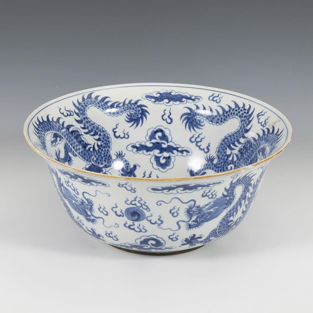 You are here:   Home Categories Non-European Art ???_Große chinesische Kummenschale mit Drachenmalerei, Porzellan, Unterglasurblau, defekt!