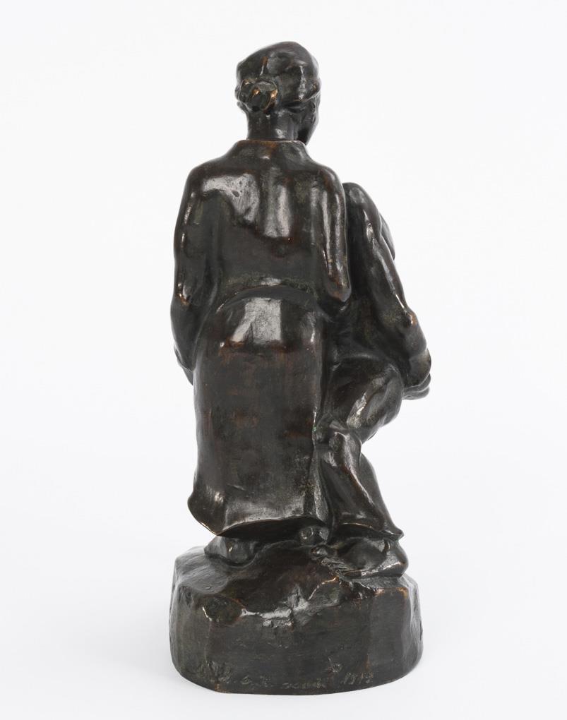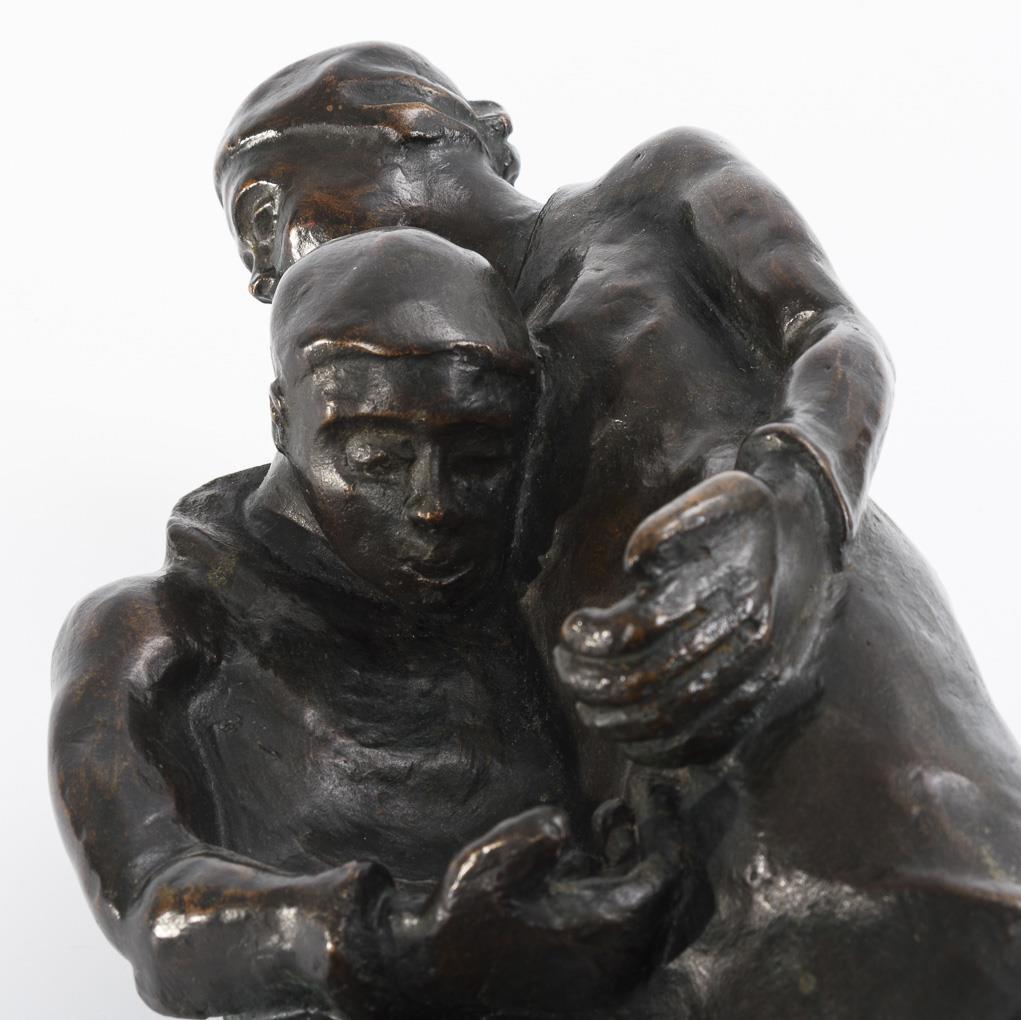 Probably depiction of Käthe Kollwitz with her dead son. Possibly also designed after a design for the monument "Mourning Parents" in memoriam to Käthe Kollwitz . Patina slightly rubbed.