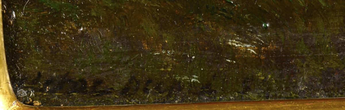 Oil / wood. Signed lower left.
