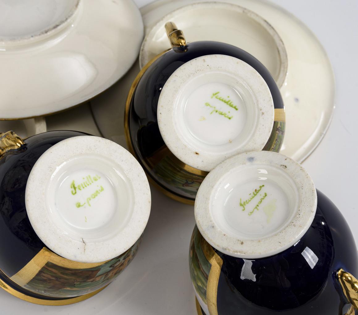 3 cups with landscape painting. Feuillet.