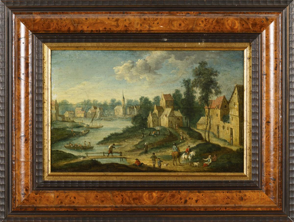 You are here:   Home Categories Paintings ??? Tafelgemälde mit Stadtlandschaft, Reitern und Personen