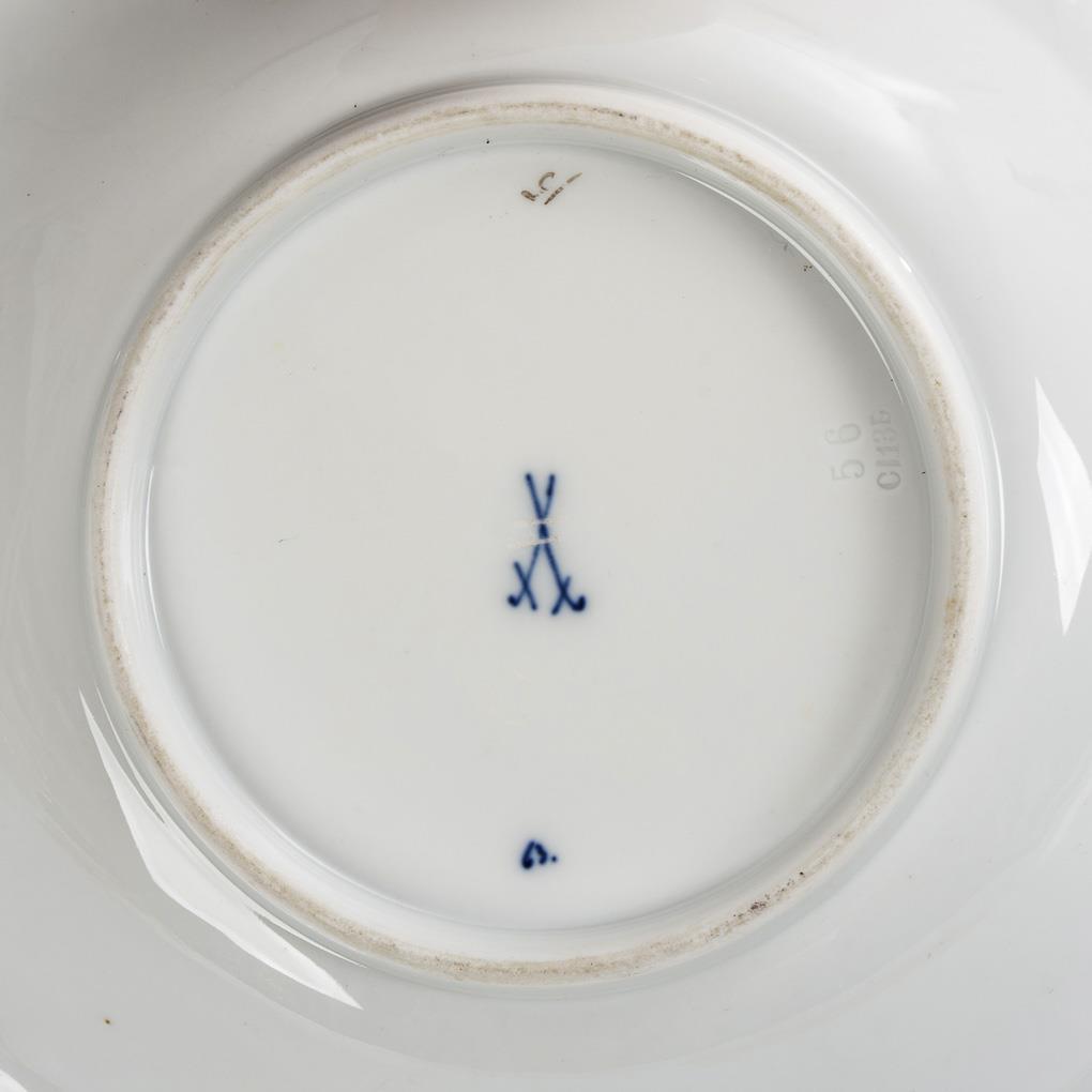 Polychrome painted, gold decorated. Ø 25.5 cm.