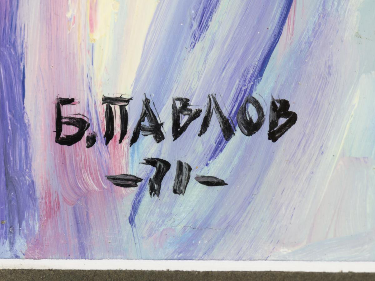 Oil/painted cardboard. Signed in Cyrillic on the lower left. (19)71.