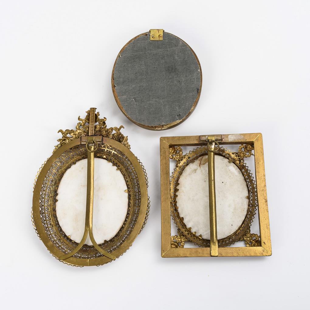 2 porcelain pictures: Sistine Madonna after Raphael (1483-1520) and Beatrice Cenci after Guido Reni (1575-1642). Both in decorative brass frames. / 1 small porcelain painting, signed "Boehm": Neapolitan fishing boy by Gustav Karl Ludwig Richter (1823-1884. In wooden frame. Partly small traces of scratches on the painting.