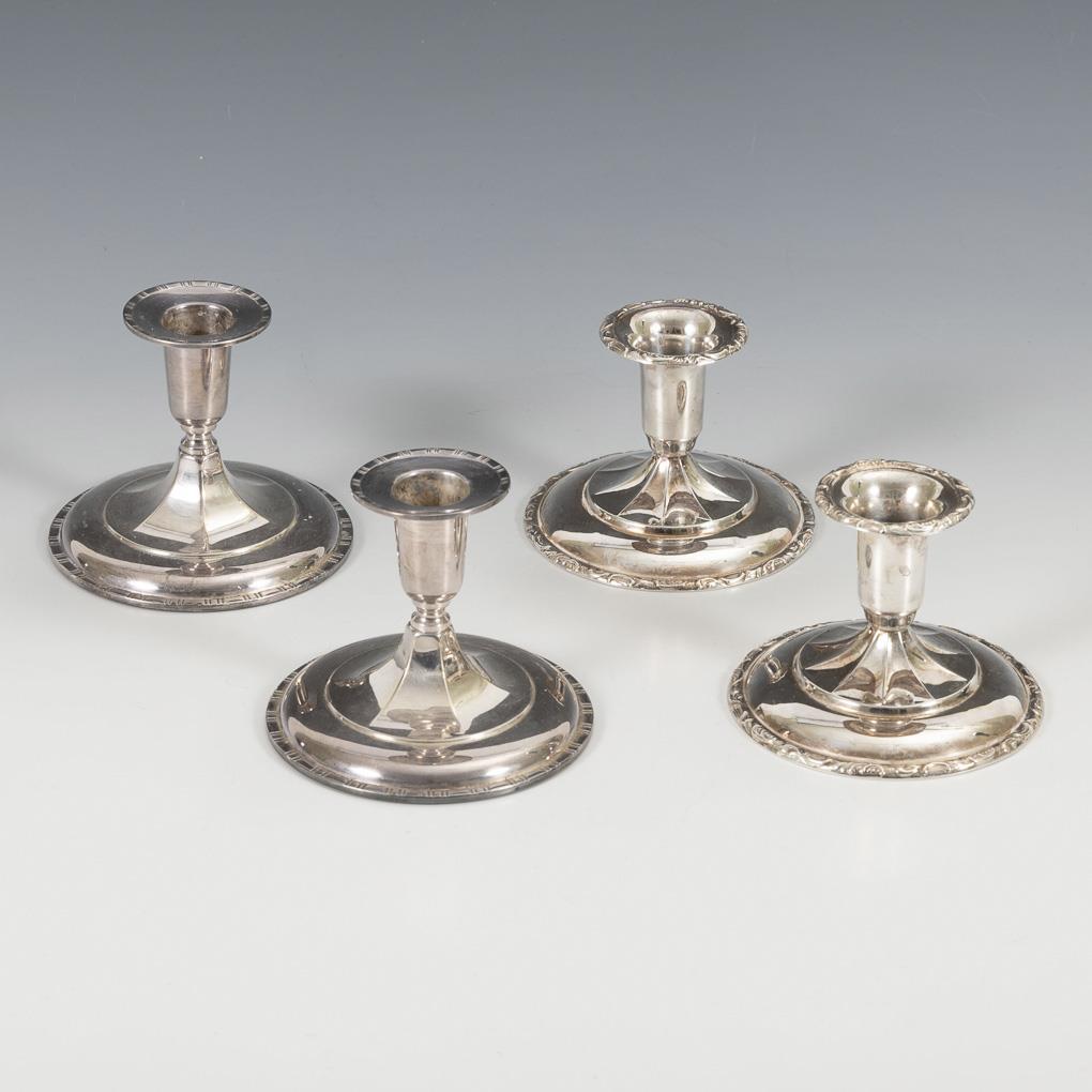 4 small silver candlesticks.