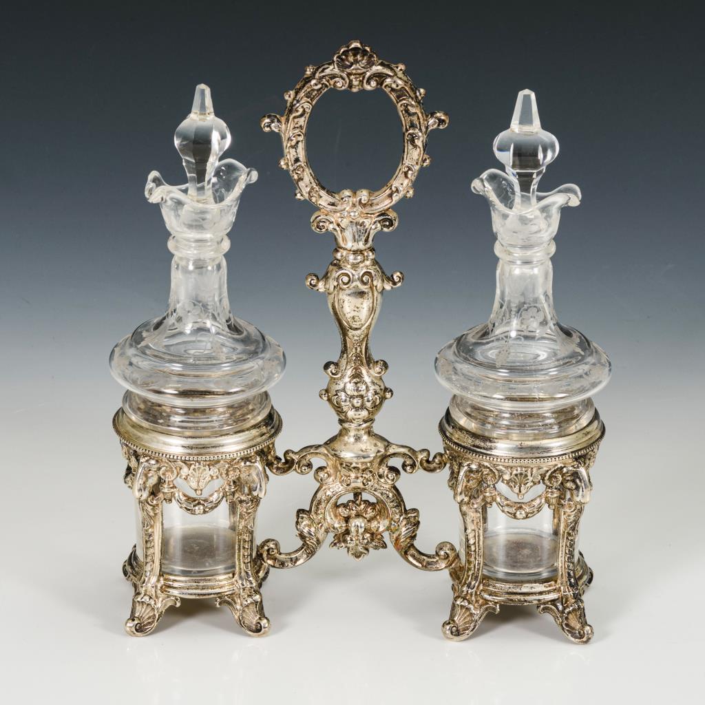 Silbermenage mit 2 Glaskaraffen