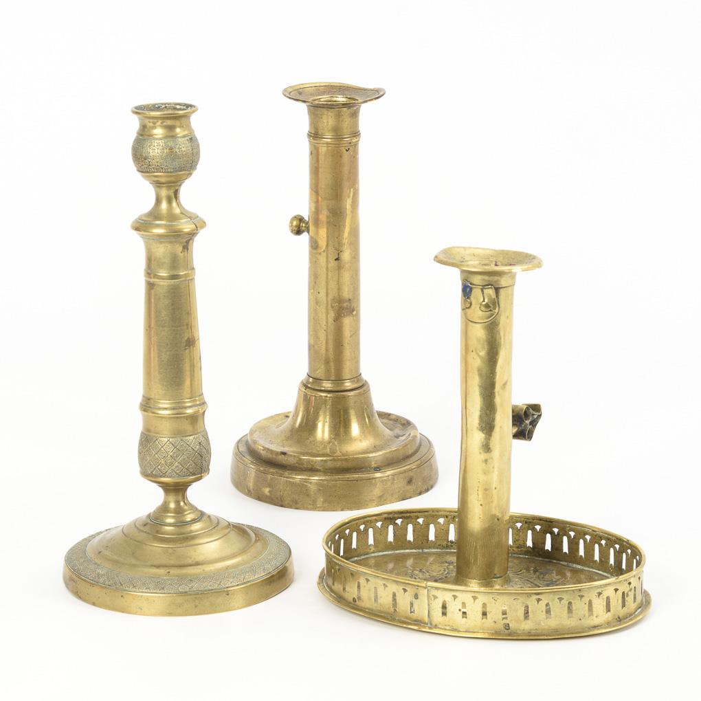 Bronze chandelier with fine ornamental friezes; sliding chandelier with high foot, sliding chandelier with punched ornament on the oval foot bowl with gallery. 1 screw connection old supplemented, 1 hairline crack on the wax plate, 1 carrying handle missing, 2x strong signs of age/use.