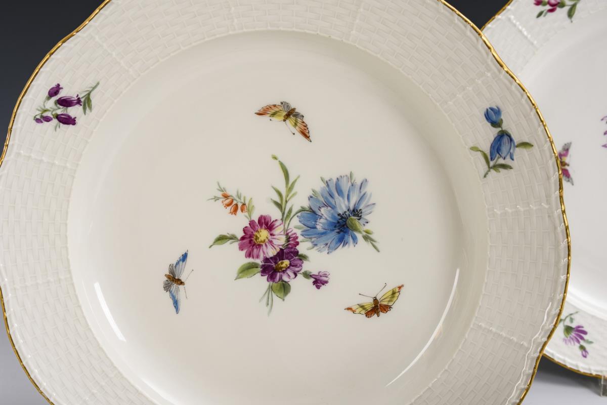 4 plates with floral and insect painting. KPM Berlin.