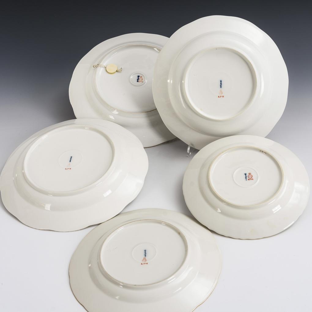 5 different plates with floral and insect painting. KPM Berlin.