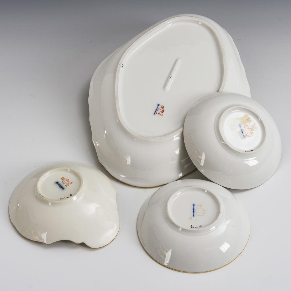 Bowl, shell bowl and 2 saucers. KPM Berlin.