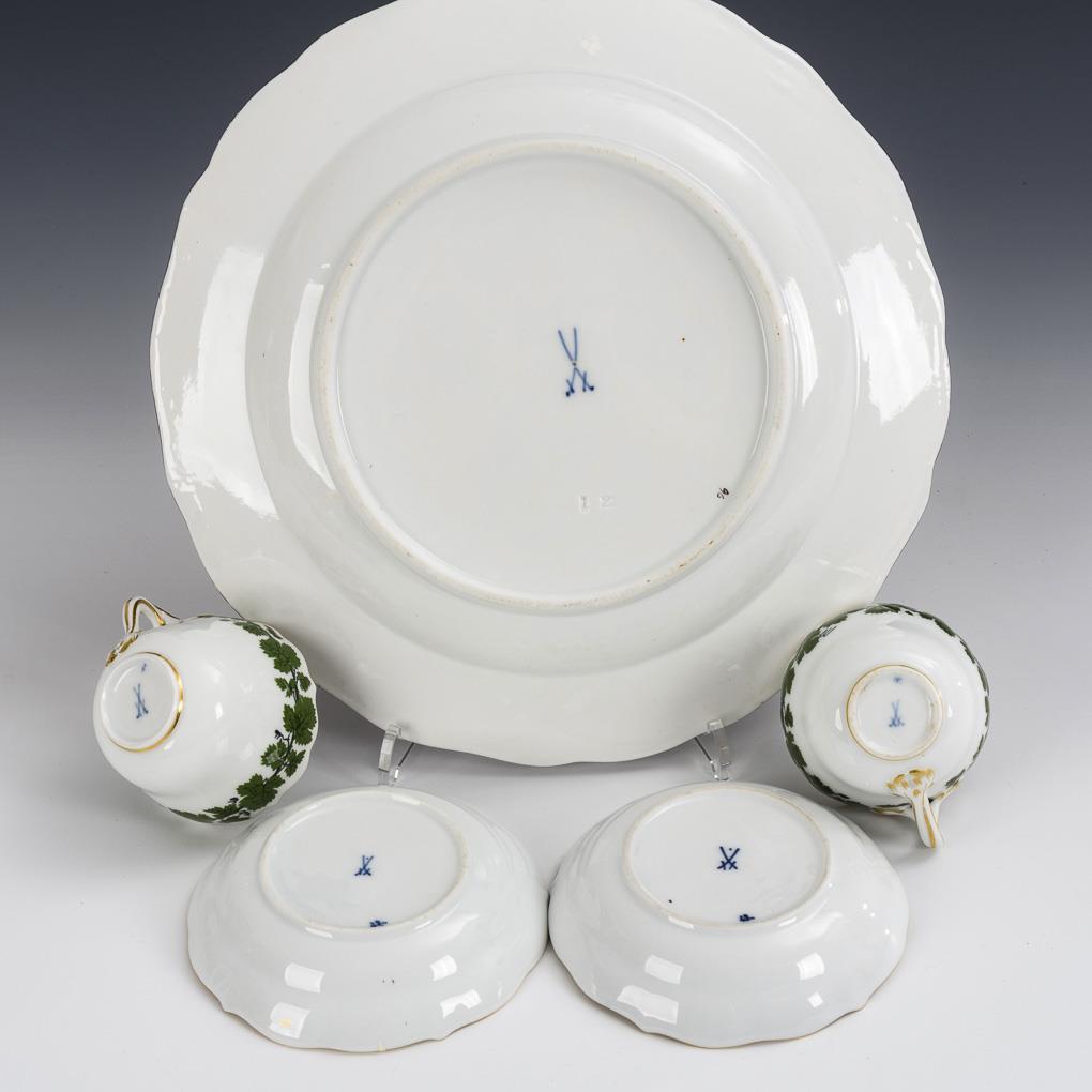 Plate and 2 demitasse cups. Meissen.
