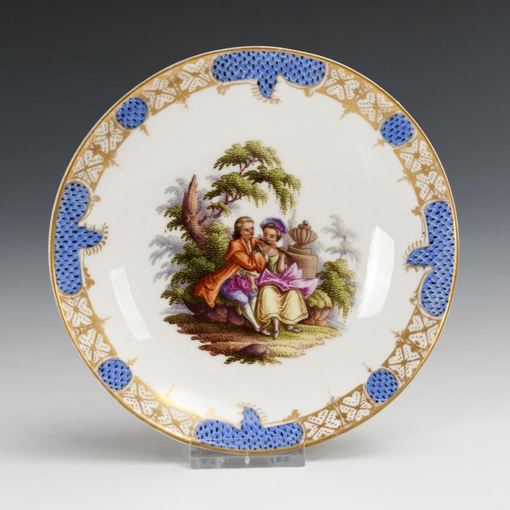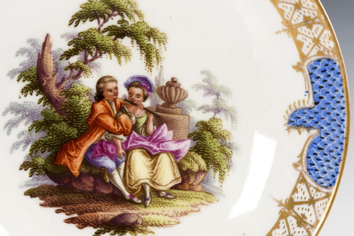 Saucer with Watteau painting. Meissen.