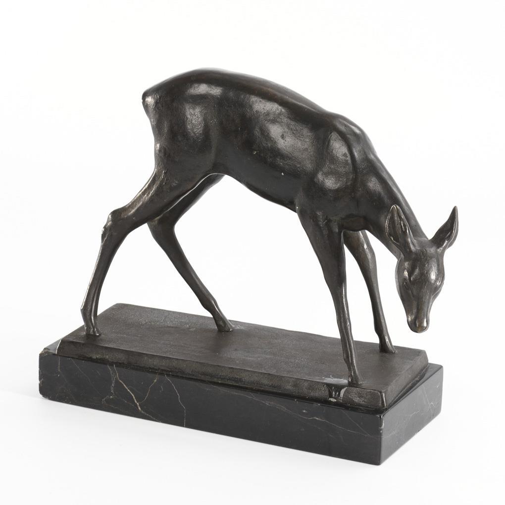 Realistically designed deer grazing. Smaller chips on the plinth.