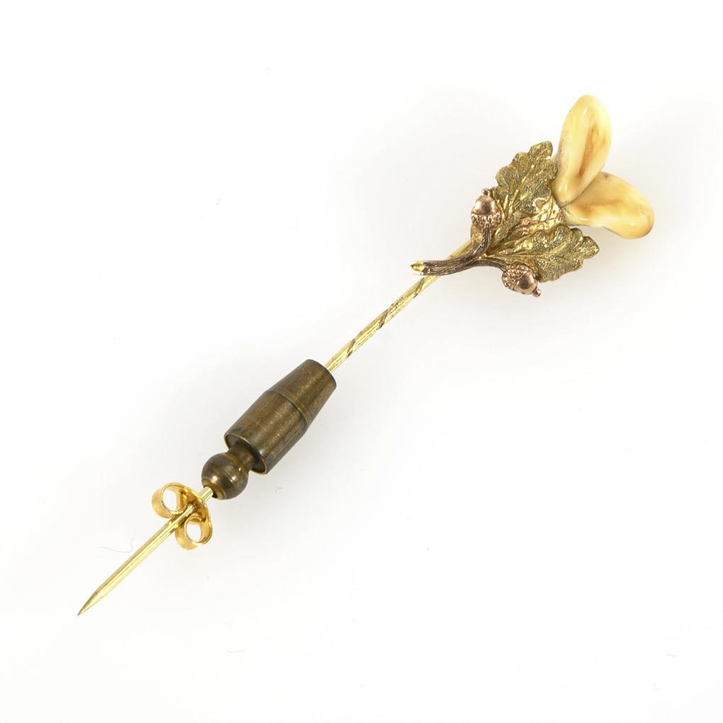 Yellow gold / rose gold 585 stamped. 2.5 x 1.5 cm. Pin L 5.7 cm. 3,7 g.