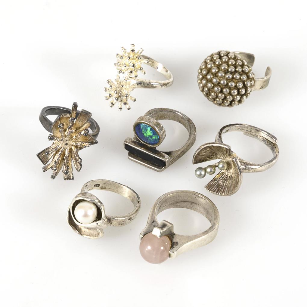 7 silver designer rings.