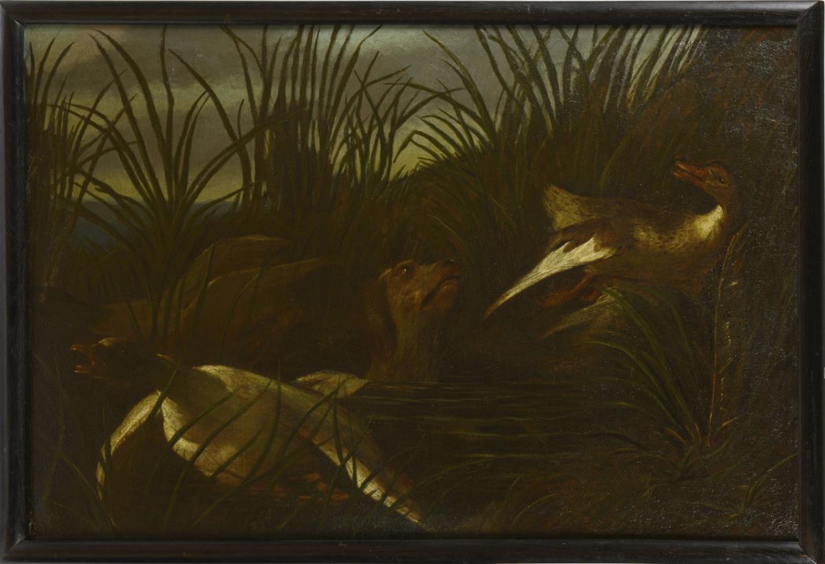 Baroque painter: hunting dog with wild ducks