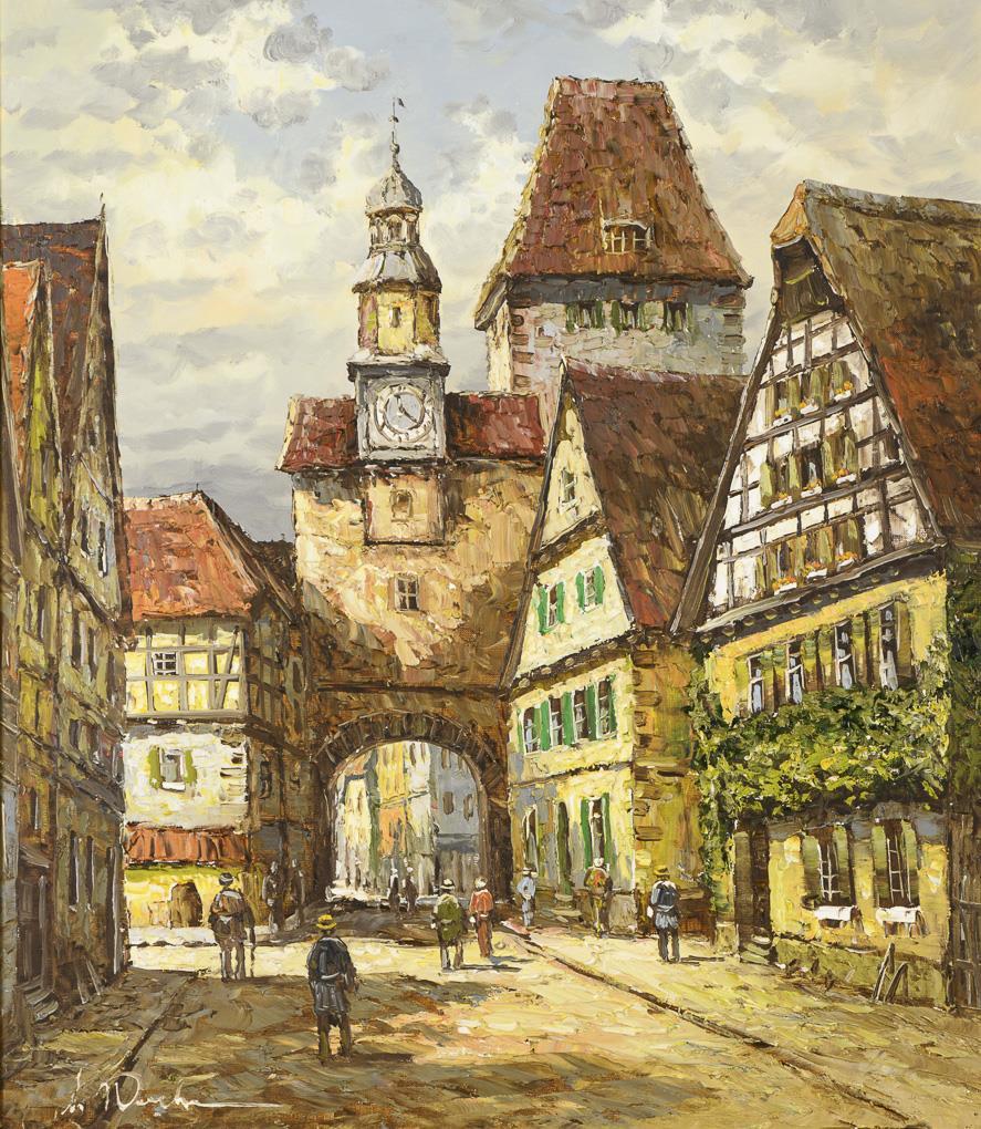 Staffage figures on the street near the Röderbogen and the Markusturm.