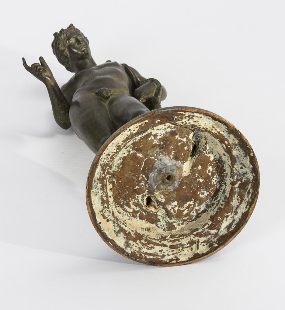 After the ancient standing figure from Pompeii designed naked god of wine (Roman Bacchus) with Nebris over his shoulder. Smaller touch-ups by the foundry.