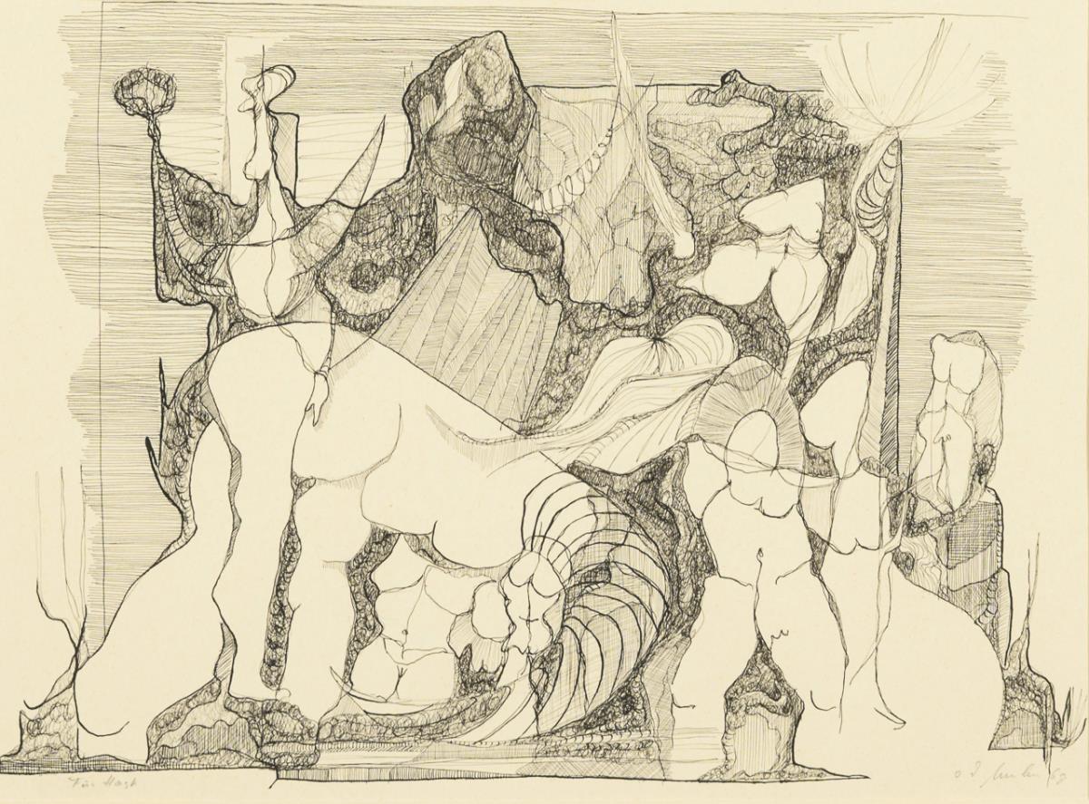 Ink drawing. Pencil signature. [19]68.