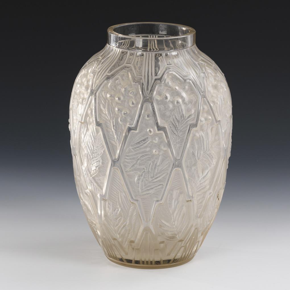 Colorless, molded and partially frosted glass. H 28.5 cm.