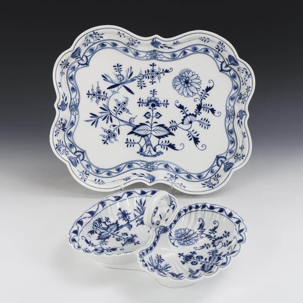 Onion pattern tray and cabaret| see addendum. Meissen.