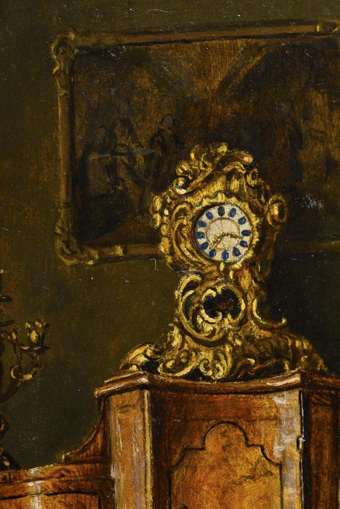Rococo gentleman in salon with tabernacle secretary