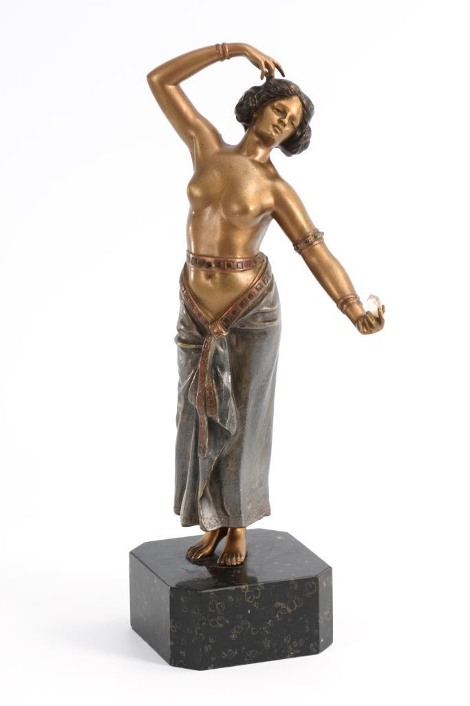 Ausdruckstänzerin mit freiem Oberkörper, einen "Edelstein" in der Hand haltend. Einige wenige Alters-/Gebrauchsspuren.