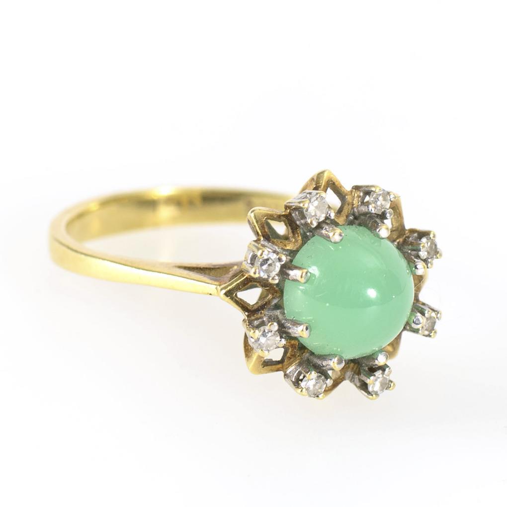 Ring with chrysoprase and diamonds.