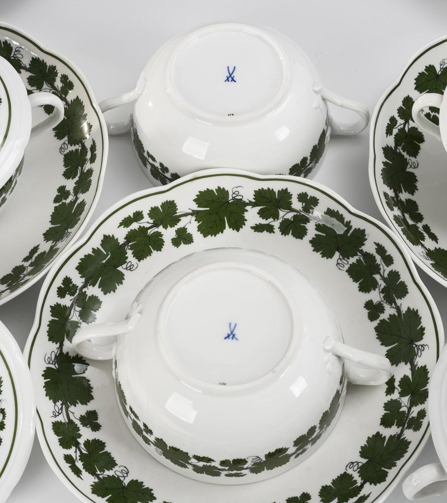 6 lidded soup cups with vine leaves decor. Meissen.