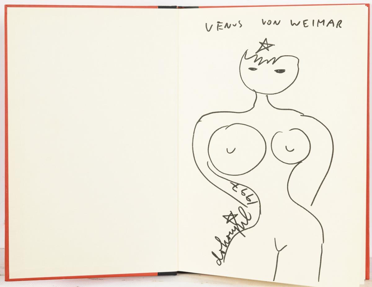 Dedication and drawing on the dirty sheet of the exhibition catalog "The Ring of the Nibelung" of the Kunstsammlungen zu Weimar.