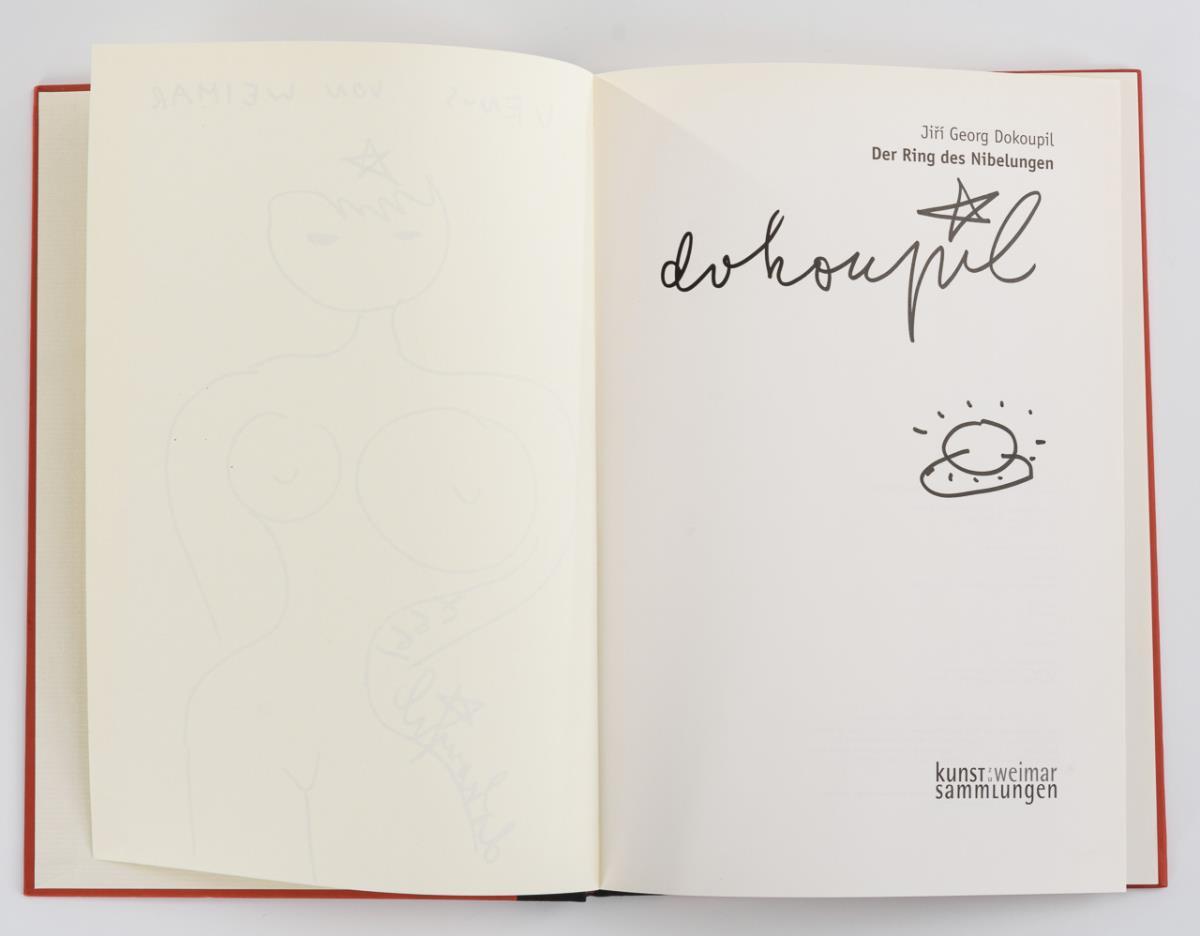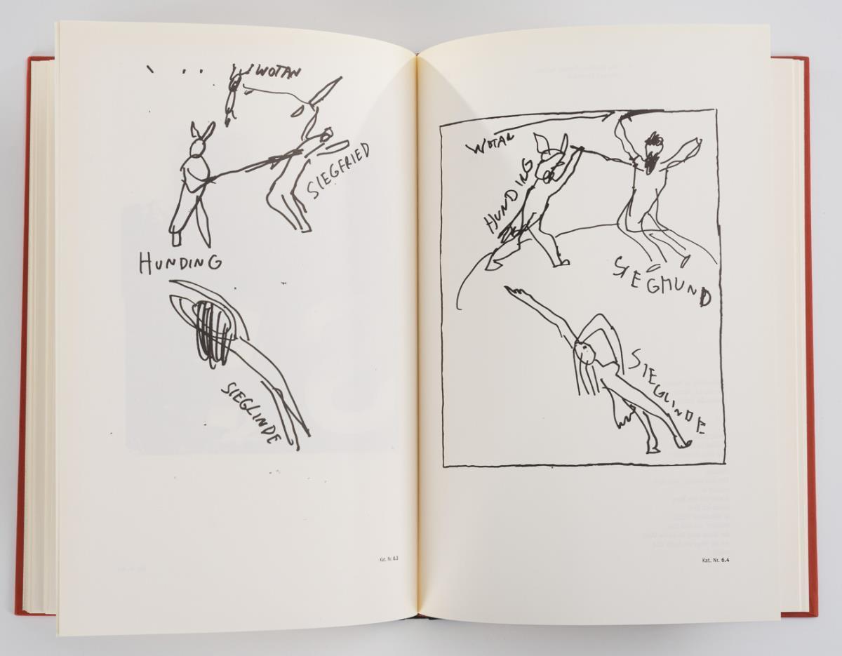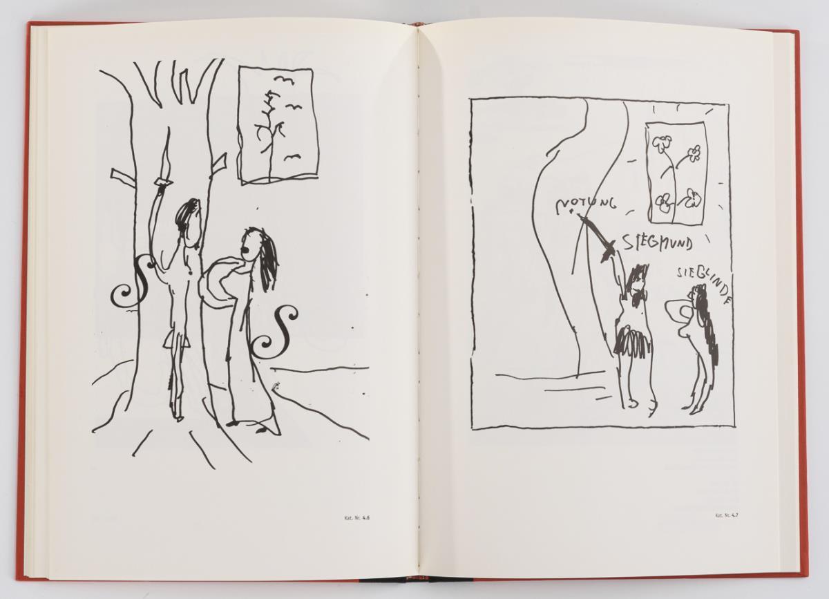 Dedication and drawing on the dirty sheet of the exhibition catalog "The Ring of the Nibelung" of the Kunstsammlungen zu Weimar.