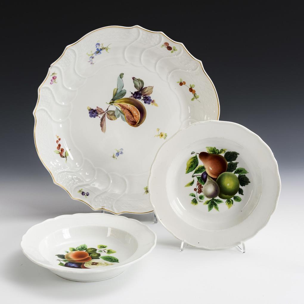 Vegetable plate and 2 plates with fruit painting. Meissen.