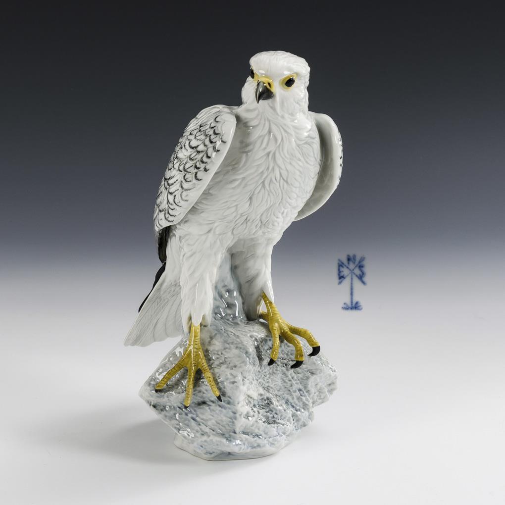 Hawk sitting on a rock. Claws and 1 tail feather restored.