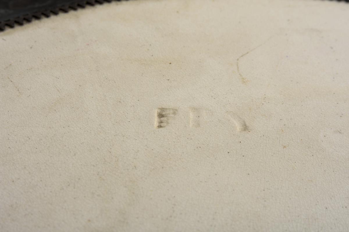 Stoneware, colorfully painted, gold-staffed, dark patinated bronze. Ø inside 34.5 cm, outside 51 cm.