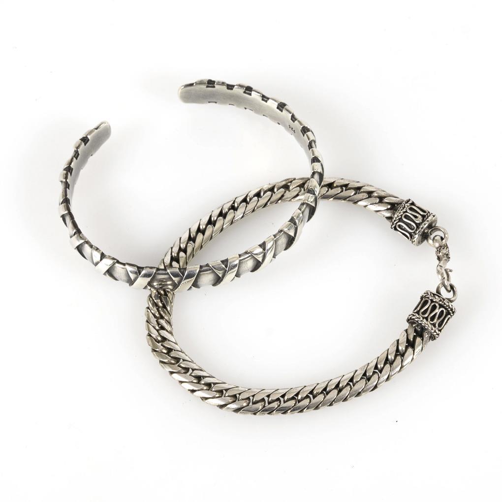 Silver bangle and bracelet.
