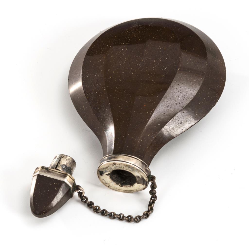 Steinschnitt-Flacon aus Jaspis mit Silbermontierung