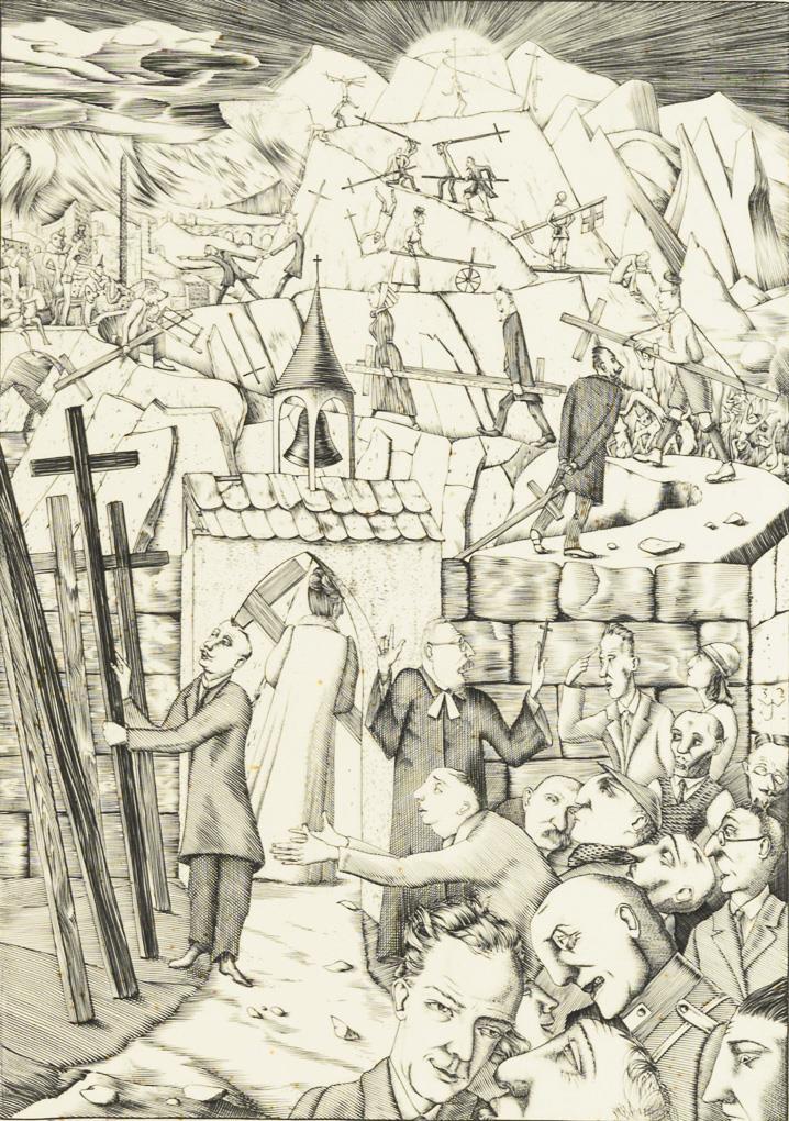 Posthumous reprint of the original plate from 1932; verso estate stamp "Nachlass Johannes Wüsten", verso titled in ballpoint pen, numbered No. 109, dated "Jan. 1985" and signed "H. Wüsten". Lower margin creased (adjusted to frame size), sheet somewhat foxed.