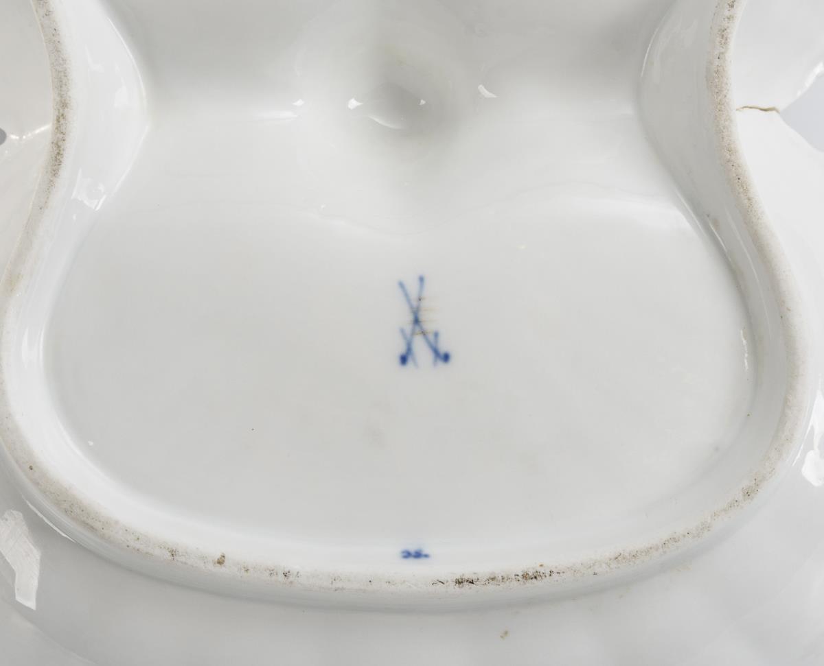 Cabaret in the form of an opened shell with central handle. Bottom rim chip and fire crack.