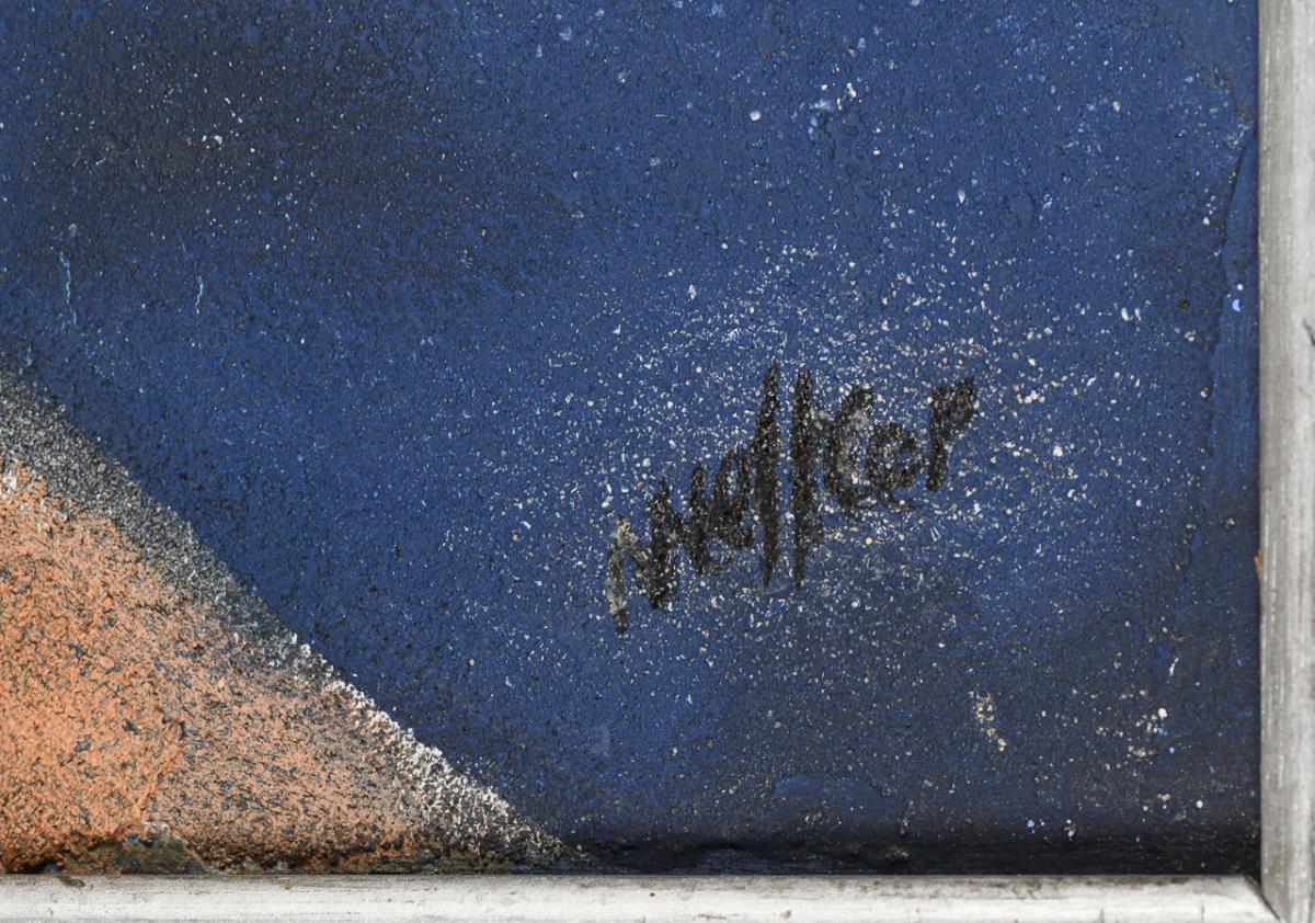 Oil, sand / cardboard. Signed lower right, inscribed on verso.