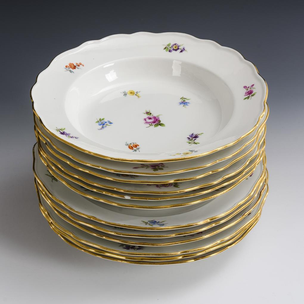 14 pieces of a dinner service with scattered floral painting. Meissen.