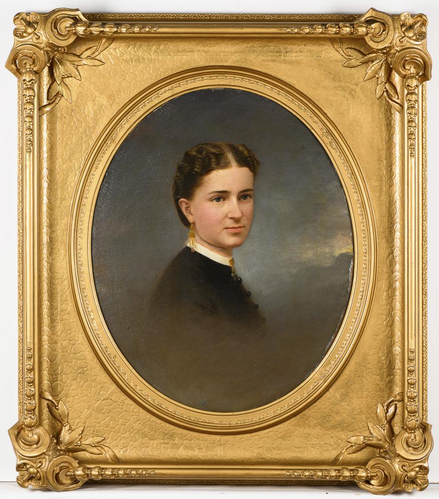 Oval portrait of a young ladies in a magnificent frame
