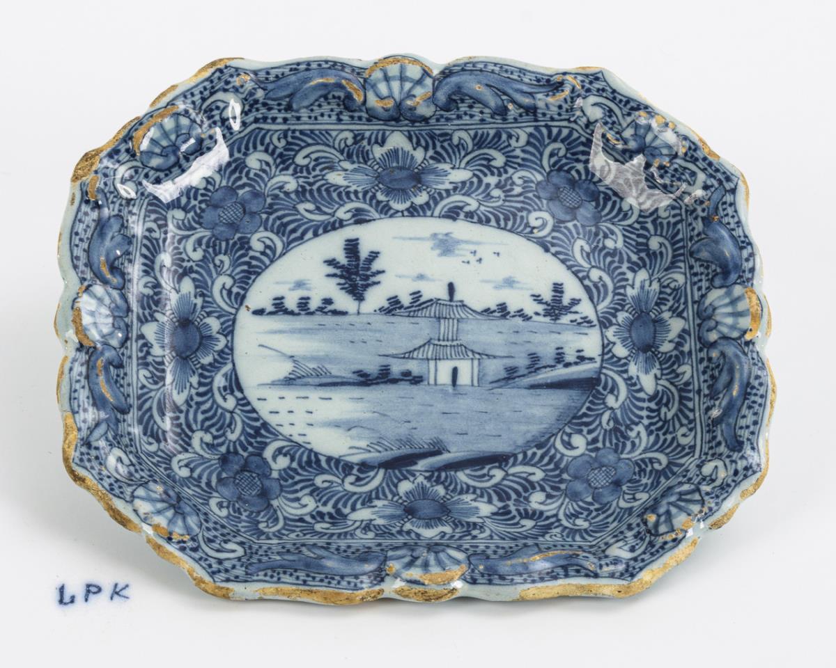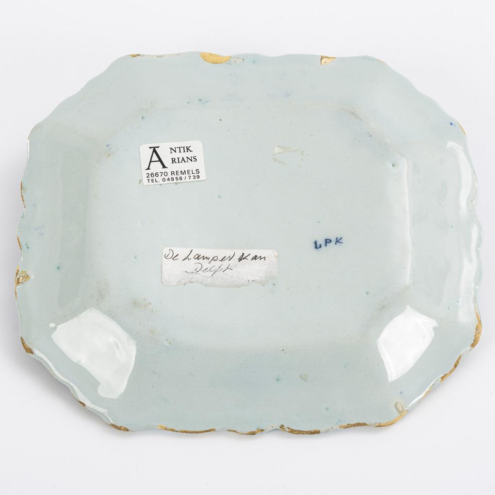 Small baroque Delft faience plate. De Porceleyne Lampetkan, 1637-1811.