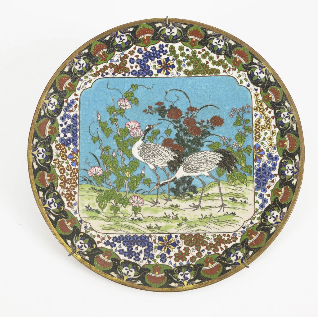 2 fine enameled cloisonné plates.