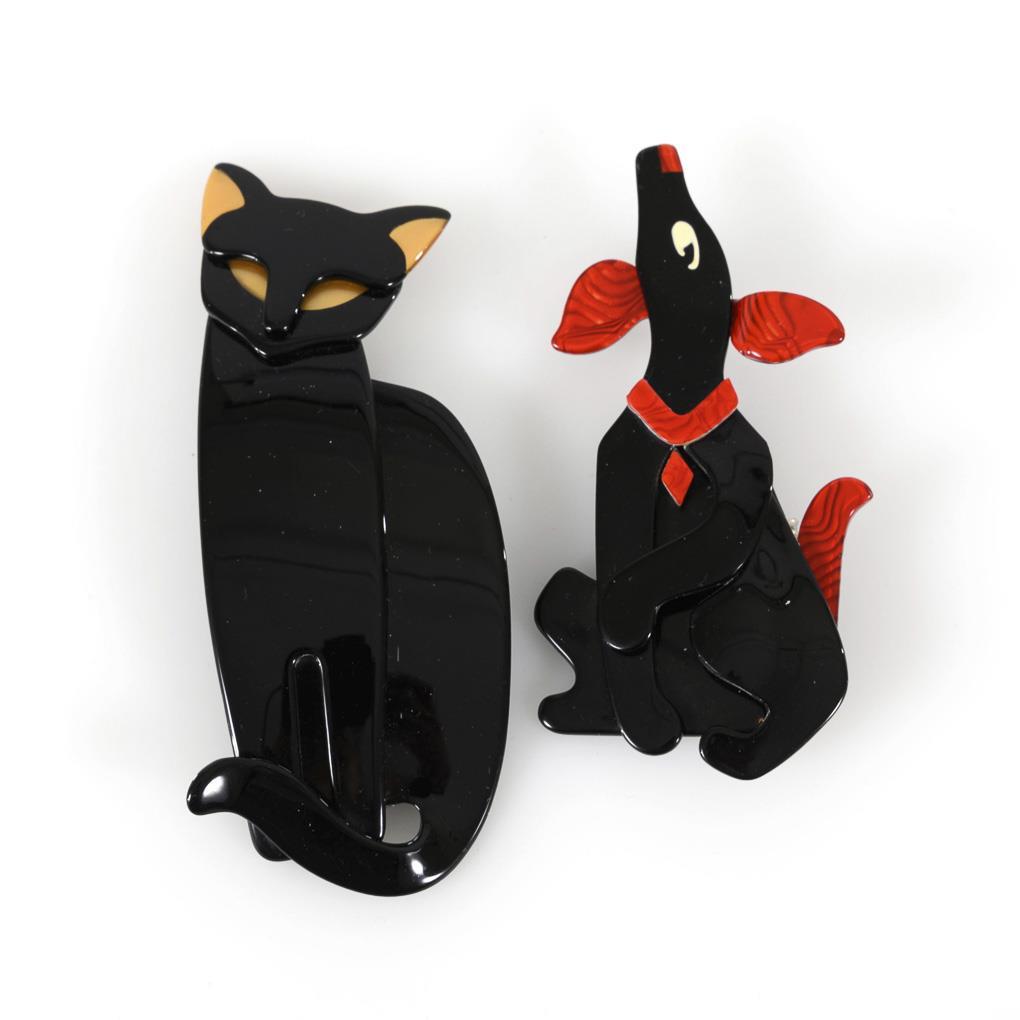Formed from plastic segments large cat and dog. Metal brooch.